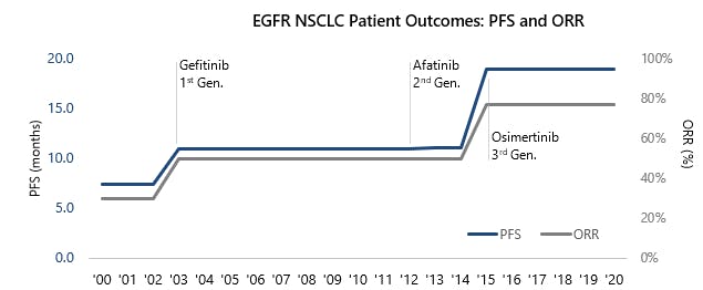 Figure 3: The growth in the U.S. oncology market was enabled by the dramatic improvements in patient care outcomes supporting their clinical success. This is particularly evident in front line EGFR NSCLC.