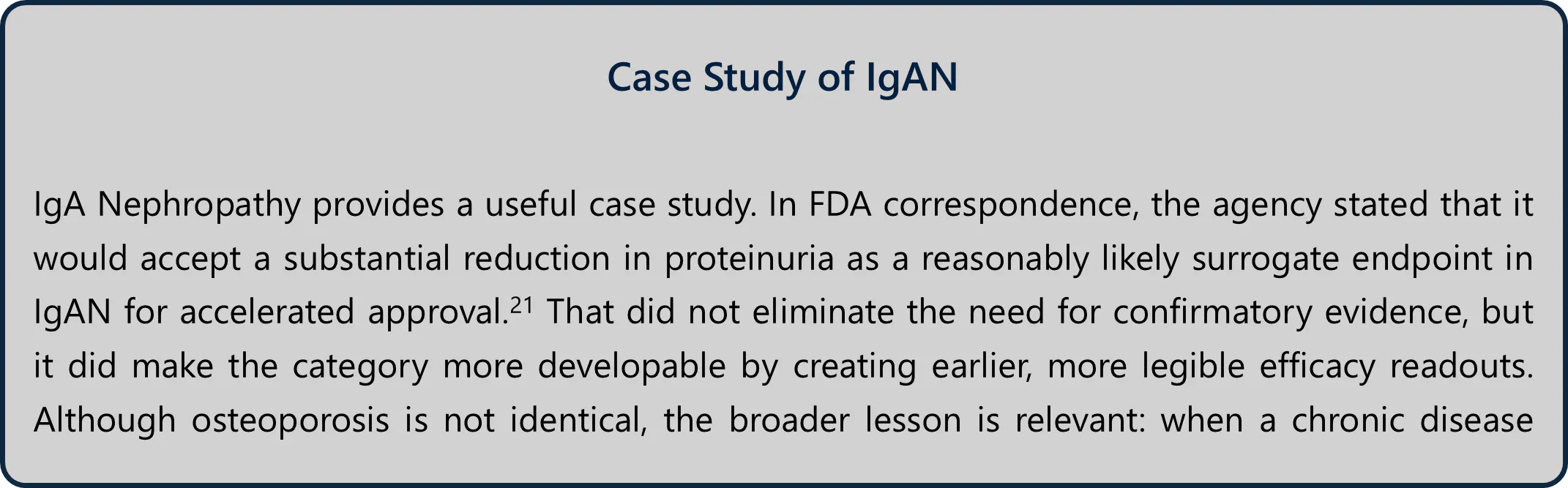 For innovators, the second major obstacle beyond biology was the evidentiary burden. Under the FDA’s pre-2025 framework, BMD could support fracture-risk assessment, but it was not sufficient on its own to establish efficacy. Sponsors still had to demonstrate increases in BMD and reductions in fracture incidence in clinical trials. In practice, even when Phase 2 studies showed meaningful gains in BMD and other signs of skeletal improvement, those results were not registration-enabling. Companies still had to run very large, lengthy, and costly Phase 3 fracture-endpoint trials to prove that patients receiving treatment experienced a reduced disease burden.