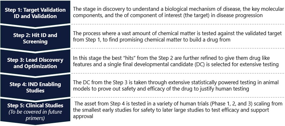We seek to shed light on this topic, and several others in our primer series. Through these primers, we hope to provide additional clarity into several integral processes underlying the biotech industry to help a broader understanding of the challenges the industry faces and the necessity for continued investing here. We hope readers walk away with a deeper appreciation and a clearer understanding of the immense and collaborative effort involved in the biotechnology community’s journey to advance drug discovery and development. It truly takes a village to create a drug.